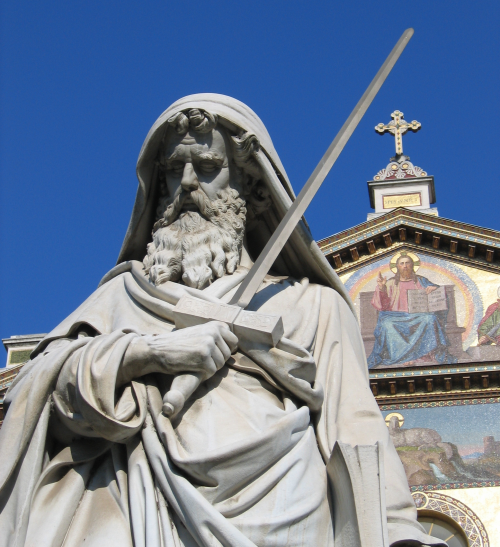 statua di san Paolo nel cortile della basilica di san Paolo, Roma